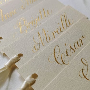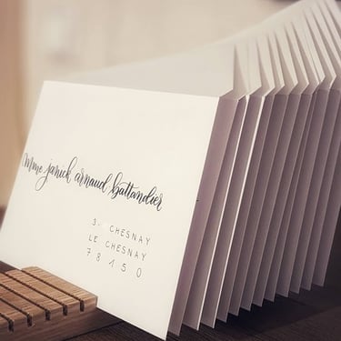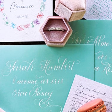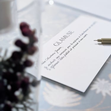 Quelque soit la technique (gravure, encre ou hot foil), la calligraphie imprègne un souvenir fort, transforme un simple objet en message personnalisé qui touche profondément les personnes qui le reçoivent.