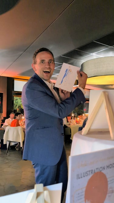 “Nous étions ravis de la prestation de Anne, les convives ont beaucoup aimé l'animation proposée, et de pouvoir recevoir leur dessin souvenir à l'issue du dîner!"